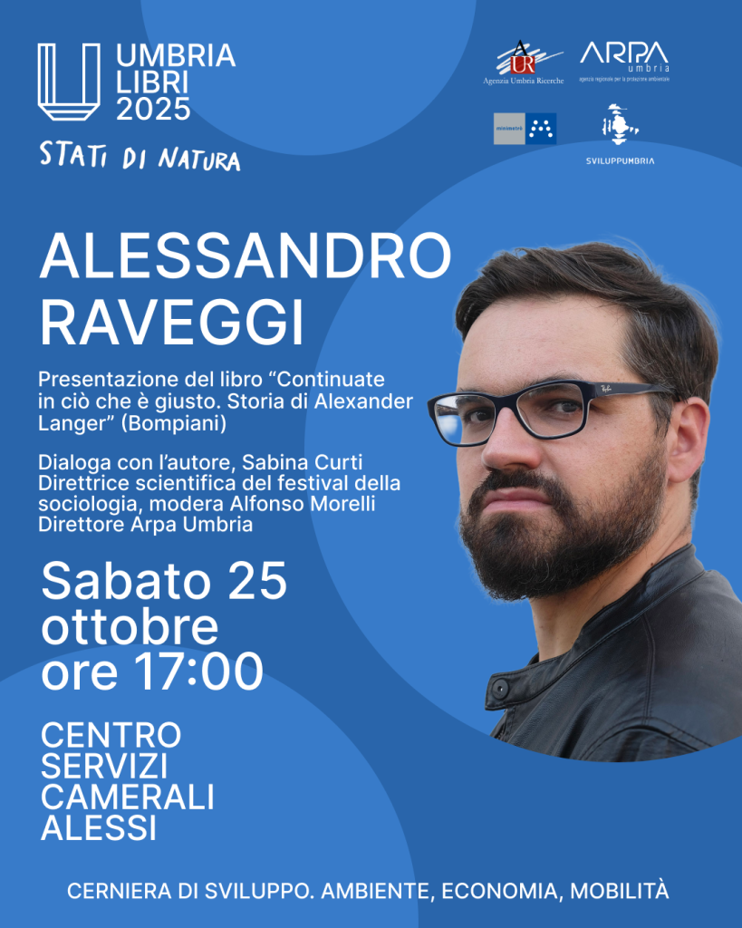 Durante le giornate perugine, saranno due gli appuntamenti all’interno del format. Il primo, sabato 25 ottobre alle ore 17.00, si terrà al Centro Servizi Alessi, con la presentazione del libro Continuate in ciò che è giusto. Storia di Alexander Langer (Bompiani). A trent’anni dalla sua scomparsa di Langer l’autore, Alessandro Raveggi, ripercorre la storia di un profeta disperato e pieno di speranza, che ha creduto nella possibilità di un’umanità multilingue e capace di valicare muri e frontiere. A dialogare con Raveggi saranno Alfonso Morelli e Sabina Curti. Presente anche il gruppo di lettura “Onda libera” della Biblioteca degli Arconi di Perugia con Gaia Rossetti.