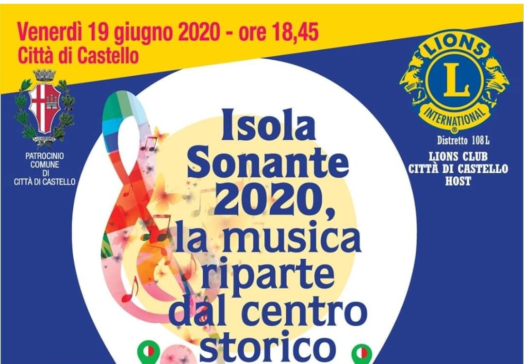 CITTA’ DI CASTELLO – Isola Sonante 2020: la musica riparte dal centro storico di Città di Castello. L’appuntamento è per venerdì 19 giugno a partire dalle 18.45. L’iniziativa è del Lions Club Città di Castello Host da un’idea di Fabio Battistelli e Rosario Salvato e gode del patrocinio del Comune.