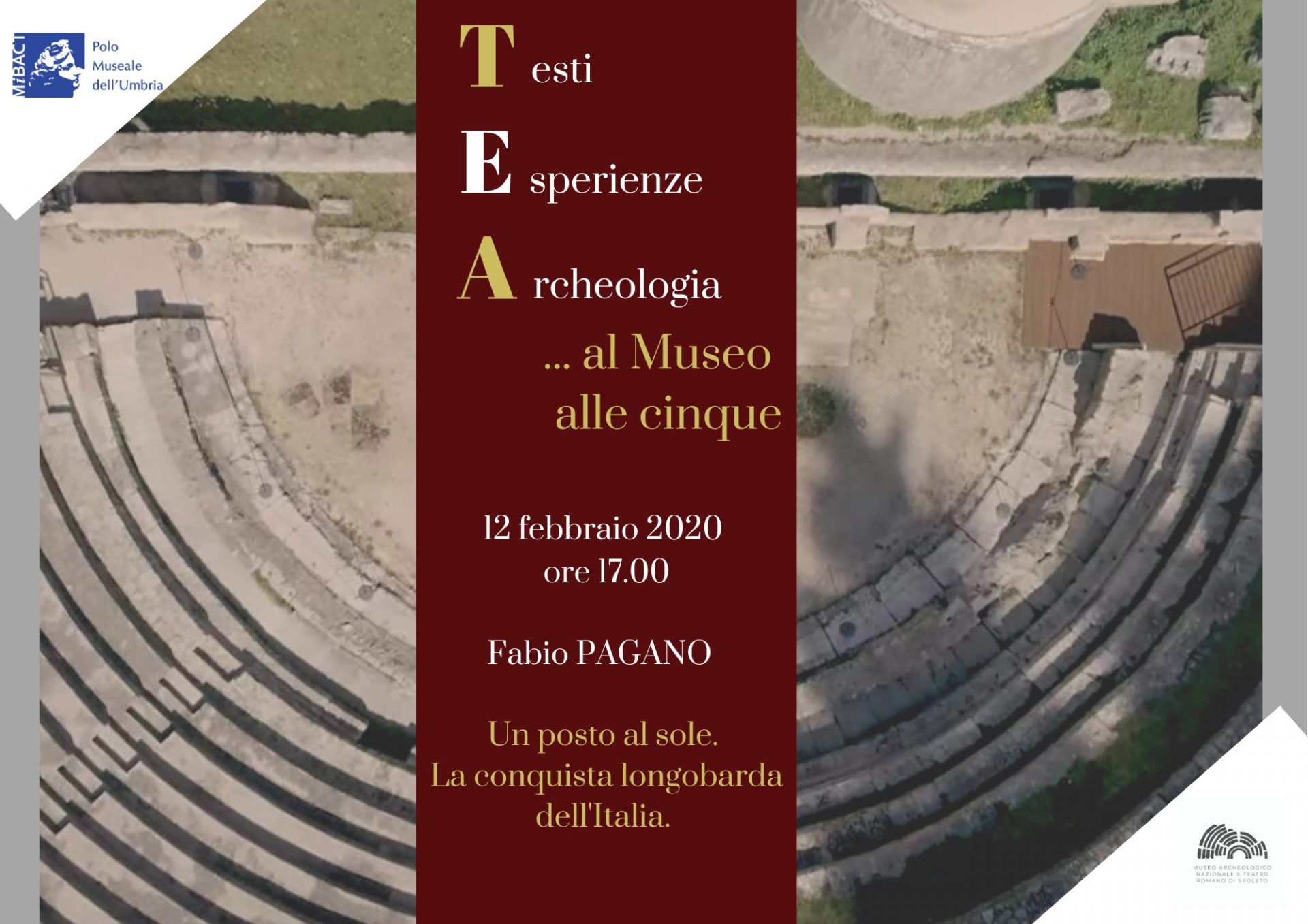 SPOLETO – All’interno del ciclo Testi Esperienze Archeologia, il 12 febbraio alle ore 17 il Museo archeologico nazionale e teatro romano di Spoleto ospiterà Fabio Pagano, direttore del Parco archeologico dei Campi Flegrei, con una conferenza dal titolo Un posto al sole. La conquista longobarda dell’Italia.