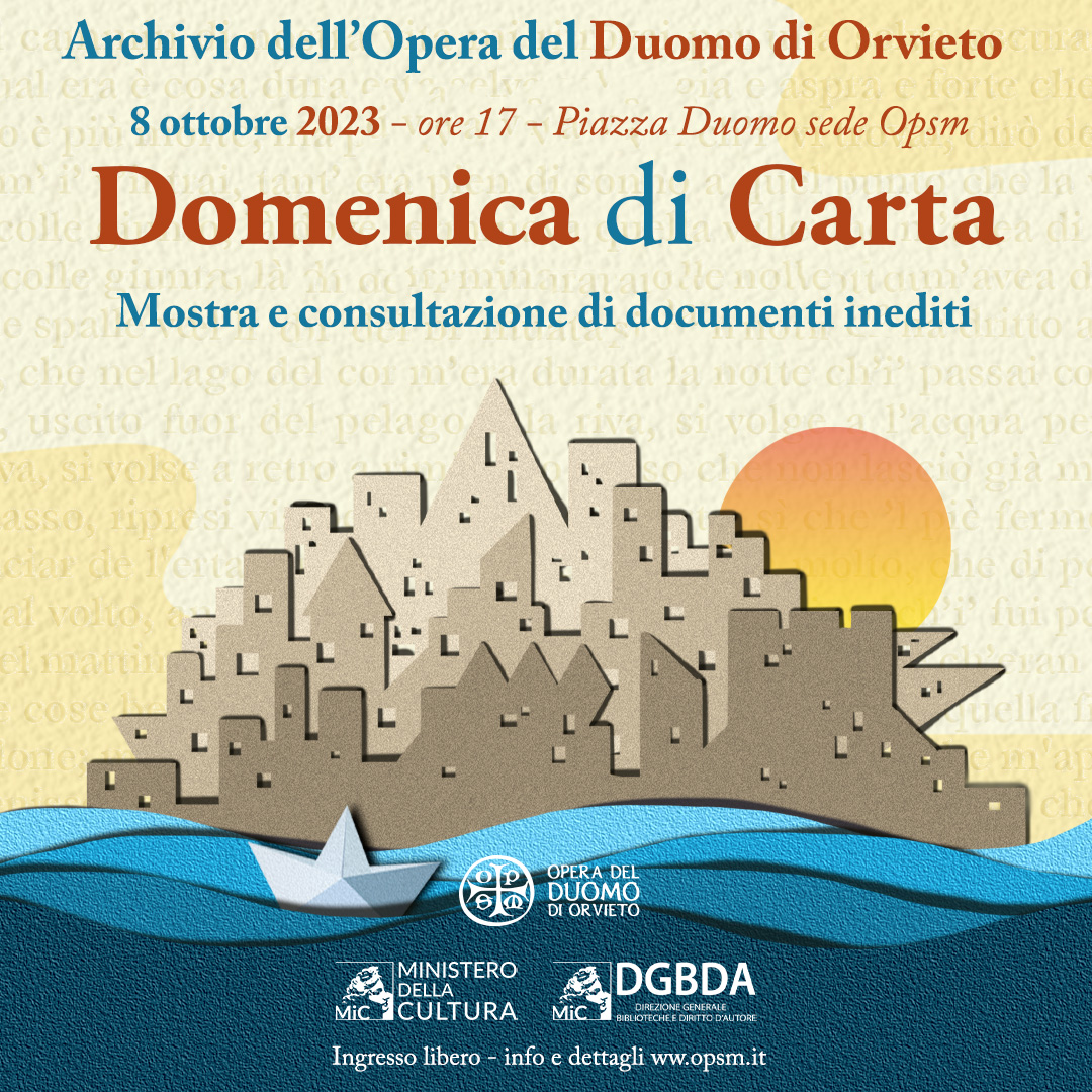 ORVIETO – Domenica 8 ottobre, alle ore 17, l’Archivio dell’Opera del Duomo di Orvieto , presso la sede della Fabbriceria