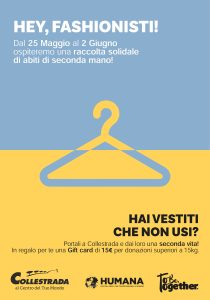 PERUGIA – Da sabato 25 maggio a domenica 2 giugno al centro commerciale Collestrada ci sarà la raccolta da parte di Humana People to People Italia onlus di abiti usati da un lato per sostenere progetti di sviluppo per migliorare le condizioni di vita delle persone in difficoltà in tutto il mondo; dall’altro perfavorire il riutilizzo e il riciclo, contribuendo significativamente alla riduzione degli sprechi e alla tutela dell’ambiente.