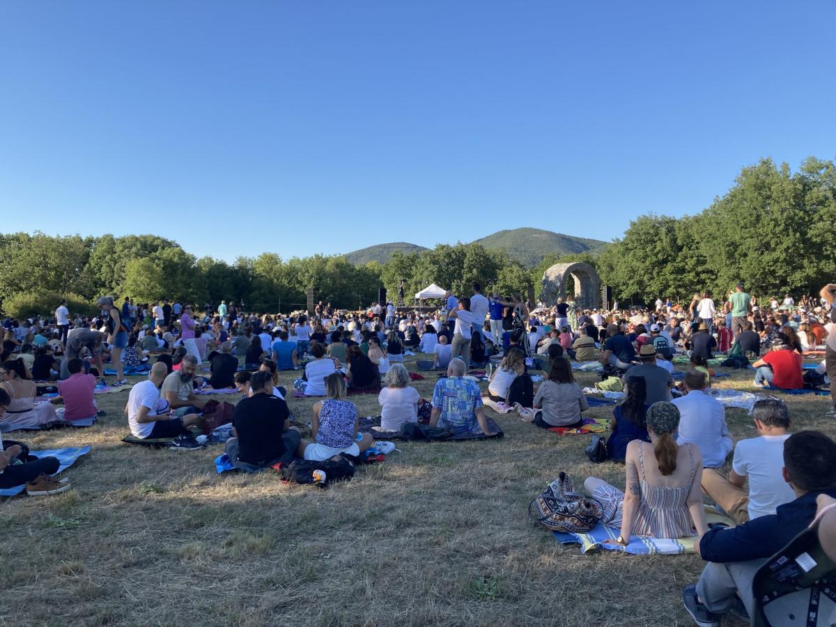 Francesco Arcuri alle percussioni. L’emozione fra il pubblico è palpabile. La conclusione è con l’immancabile Experience che è da brividi, mentre il cielo scurisce. Quella distesa umana colorata non può che alzarsi a applaudire, in un lungo scroscio che è un ringraziamento del cuore. L’atmosfera di ieri a Carsulae, con sullo sfondo il grande arco romano, gli alberi e il cielo che lentamente mutava verso sera, con un pubblico che copriva ogni fascia d’età, è stata qualcosa per cui ci si potrebbe facilmente dilungare con una lunga lista di aggettivi superlativi. Ma c’è una sola cosa che si può fare in questi casi eccezionali: esserci. E ringraziare per esserci stati.