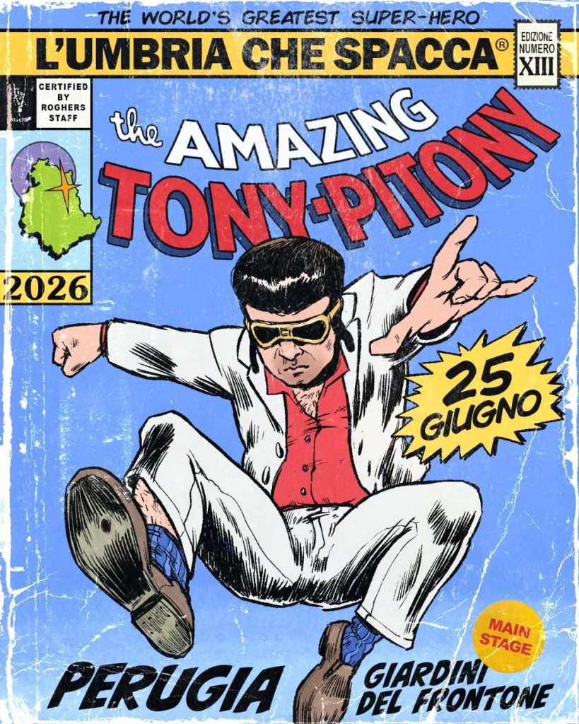 PERUGIA Per la 13ª edizione de L’Umbria che Spacca (24–28 giugno) arriva un nuovo protagonista pronto a conquistare la scena. Giovedì 25 giugno, sul main stage dei Giardini del Frontone, salirà Tony Pitony: un artista fuori dagli schemi che sta ridefinendo i confini della musica e della performance e che, con la sua carica dissacrante, registra sold out in tutta Italia.