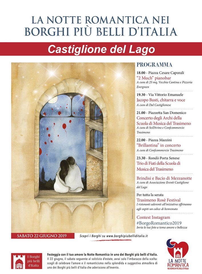 In tutti i borghi, inoltre, è prevista per venerdì 21 giugno anche un’anteprima, in occasione della Giornata Europea della Musica, con iniziative musicali dedicate all’amore e al romanticismo.