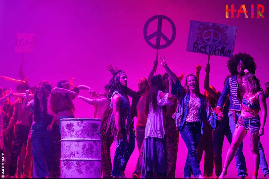 Adesso “Hair, The Tribal Love-Rock Musical”, con musiche di Galt MacDermont, le coreografie di Valentina Bordi, la direzione canora di Pasquale Girone con la supervisione di Eleonora Mosca, la direzione musicale di Antonio Torella e la regia di Simone Nardini. La versione originale (che hai poi dato il via pure ad una versione cinematografica) secondo i critici ha rappresentato “il prodotto forse più importante della controcultura hippie degli anni Sessanta”. Non solo: Hair ha contribuito alla ridefinizione del musical theatre, dando vita a quel genere chiamato musical rock o rock opera.