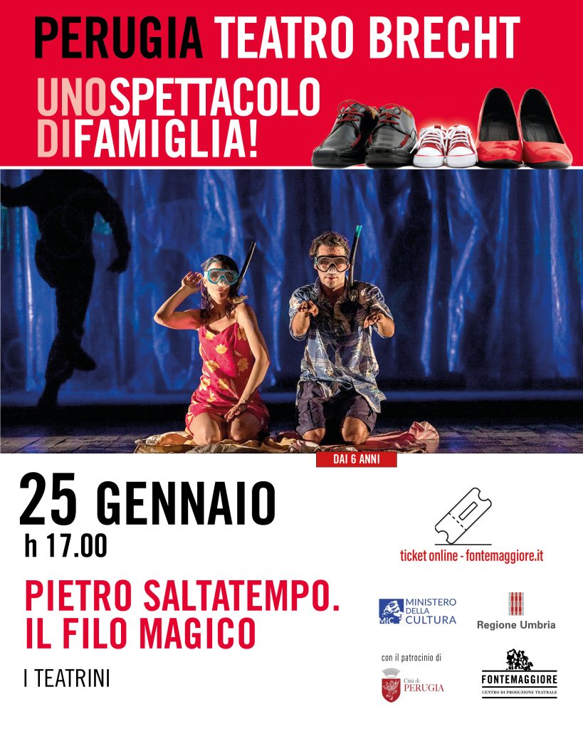 Un nuovo appuntamento con la stagione di teatro ragazzi “Uno spettacolo di famiglia”, curata da Fontemaggiore, si svolgerà domenica 25 gennaio alle ore 17 presso il Teatro Brecht di Perugia. In scena sarà presentato “Pietro Saltatempo. Il filo magico”, uno spettacolo de I Teatrini che coinvolge bambini a partire dai 6 anni con una riflessione profonda e coinvolgente sul tempo e sul suo valore nella vita di ogni individuo.