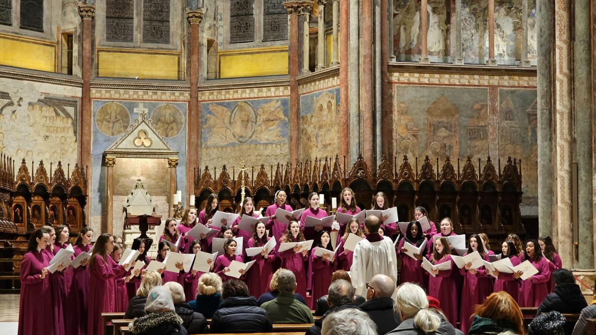 ASSISI – Un coro giovanile americano, composto da studentesse del College di Notre Dame (Indiana), ha fatto tappa alla Basilica Superiore di San Francesco per il suo primo tour italiano. Le 40 ragazze del Notre Dame Magnificat Choir, di varia estrazione accademica e fede, si dedicano con passione alla lode e alla gloria di Dio attraverso la musica corale; la missione di questa importante realtà musicale, tuttavia, non è solo quella di celebrare le tradizioni musicali della Chiesa, ma, soprattutto, di promuovere un messaggio di inclusività, unendo voci e culture diverse in un’esperienza culturale e spirituale che trascende i confini.